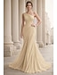 Balklänning Svepsläp Balklänningar Vintage Enkel Öppen rygg Ärmlös Över axeln Satäng med Plisserat Applikationsbroderi