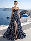 Åtsmitande Svepsläp Balklänningar Kvälls klänningar Balklänning Formell klädsel Färgblock Vit Ärmlös Axelbandslös Bröllopsgäst Festkläder med Slits