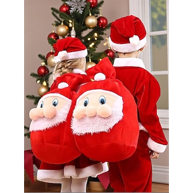 Julryggsäck i plysch med julmotiv, mjukt pälsskägg och pompoms - rolig presentpåse för julfester och festliga firanden