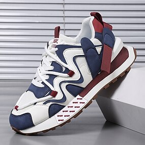 Röda och marinblå grova herrsneakers – trendiga färgblocksskor för vardagsbruk, resor och gatumode