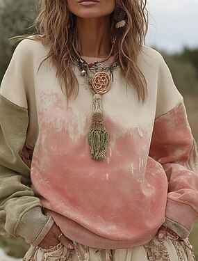 Dam Pullover Grafisk Knytbatik Abstrakt Elegant Varm Vintage Långärmad Rund hals Vanliga toppar Hem Gata Vardag Mönster Blå Rubinrött Orange Grön Vår Höst Vinter