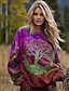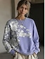 Dam Pullover Tröjor Blommig Mode Streetwear Ledigt Långärmad Rund hals Vanliga toppar Vardag Ledigt Mönster Purpur Vår Höst