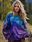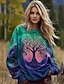 Dam Pullover-tröja Huvtröjor Grafisk Abstrakt Mode Ledigt Långärmad Rund hals Vanliga toppar Gata Vardag Mönster Rubinrött Blå Purpur Grön Vår Höst Vinter