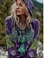 Dam T-shirt Grafisk Geometrisk Vintage Ledigt Långärmad Rund hals Vanliga toppar Dagligen Knappar Mönster Salvia grön Blå Purpur Brun Grön Vår Höst Vinter