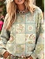 Dam Pullover-tröja Blommig Rutig Vintage Västra Ledigt Långärmad Rund hals Vanliga toppar Gata Vardag Ledigt Lappverk Mönster Grön Vår Höst Vinter