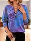Dam Pullover Grafisk Ros Casual Lång Ärmar Crew Neck Rund Hals Regelbundna Toppar Gatukläder Casual Semester Tryck Blå Lila Vår Höst Vinter