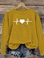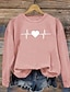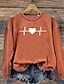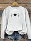 alla hjärtans dag Dam Blus Hjärta Grafisk Dagligen Stylish Ledigt Långärmad Rund hals Vanliga toppar Dagligen Helgdag Utekväll Mönster Rubinrött Grön Grå Vår Höst