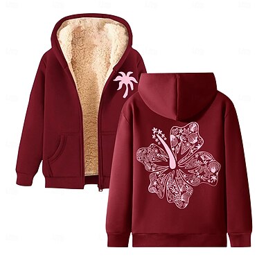Herr Huvtröja med dragkedja Fleece-jacka Huvtröja i fleece Svart Vin Rubinrött Grön Kaki Huva Blommig Grafisk Slät Dragkedja Ficka Ledigt Dagligen Utekväll Polyester Streetwear Ledigt Höst vinter