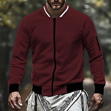 Herr Tröja Sweatshirt med full dragkedja Svart Vit Vin Marinblå Ljusgrå Kinakrage Slät Jacquard Dragkedja Sport & Utomhus Dagligen Helgdag Polyester Streetwear Grundläggande Ledigt Höst Vinter Kläder