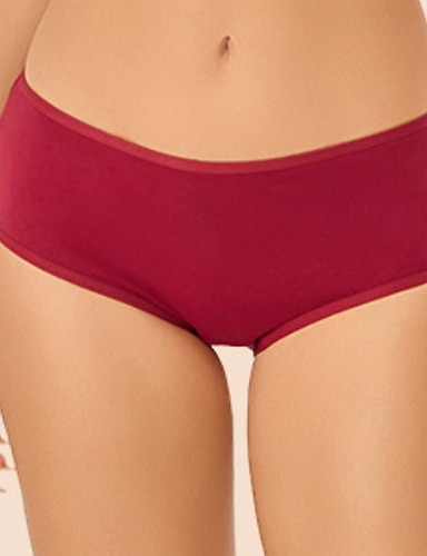 Dam Trosor Grundläggande trosor Elastisk midjaNightwearBomull Solid färg Ledigt Svart Vin Armégrön Orange Grå Vår & sommar Höst vinter