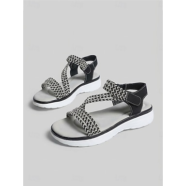 Svarta komfortsandaler med flätade remmar för kvinnor – justerbar krok &Loop-sportsandaler, lätta, kuddsula, avslappnade promenadskor för sommaren och resor &vardagskläder
