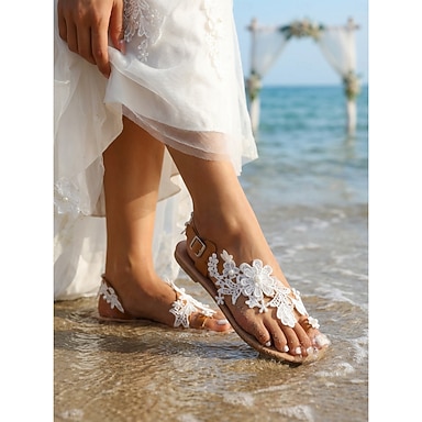 Vita platta sandaler för brudar - eleganta strandskor till bröllopet