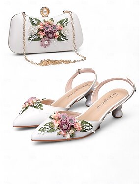 Set med höga klackar och kuvert för kvinnor – spetsiga pumps med stilettklack och matchande pärlväska för bröllop, förlovning och formella evenemang