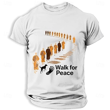 Herr Walk for Peace text munkar linje fotavtryck tassavtryck aloka hund silhuett buddhistisk mindfulness svart t-shirt kortärmad rund hals t-shirt sommar casual mode kläder s m l xl xxl xxxl