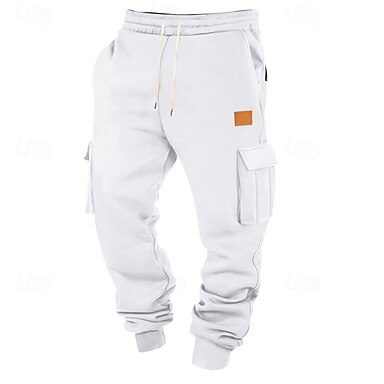 Herr Fleecebyxor Joggingbyxor Joggare Långbyxor Cargo träningsbyxor Snörning Elastisk midja Flera fickor Ensfärgat Vindtät Utomhus Fullängd Ledigt Dagligen Mode Streetwear Lös passning Svart Vit