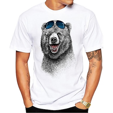 Herrarnas Coola Björn med Solglasögon Grafiska T-Shirt Kort Ärmar Avslappnad Livsstil T-shirt