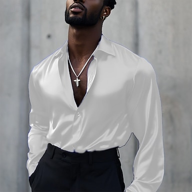 Herr Skjorta Satinskjorta Casual skjorta Knapp upp skjorta Balskjorta Slät Formell Bröllop Ljusblå Svart Vit Vin Långärmad Kavajslag Alla årstider Kläder