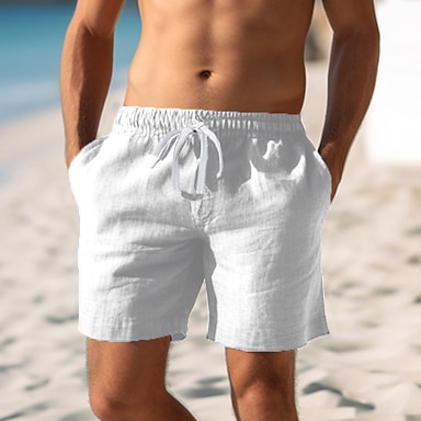 Herr Shorts Linne Shorts Sommarshorts Snörning Ficka Elastisk midja Slät Komfort Andningsfunktion Kort Ledigt Dagligen Helgdag Mode Klassisk Stil Svart Vit