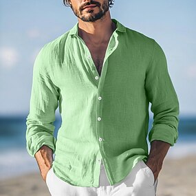 Herr Skjorta Linneskjorta Sommarskjorta Standkläder Knapp upp skjorta Slät Semester Ledigt Rubinrött Blå Grön Grå Långärmad Nedvikt Sommar Vår & sommar Kläder