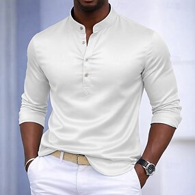 Herr Skjorta Skjorta utan krage Svart Vit Ljusgrå Armégrön Beige Långärmad Ensfärgat Kinakrage Skola Formell Knappar Kläder Elegant Semester Vintage Tropisk