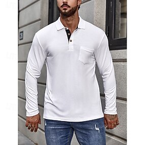 Herr Pikétröjor Golftröja Gata Ledigt Kavajslag Långärmad Grundläggande Modern Färgblock Lappverk Knappar Vår Höst Normal Vit Pikétröjor