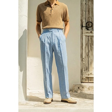 Herr Linne i bomull Kostymbyxor Formell Himmelsblå Beige Ensfärgat Standardpassform Lång Oelastisk