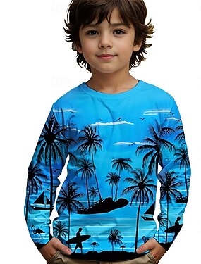 Pojkar 3D Grafisk Kokosnötsträd T-shirt Långärmad Vår Höst Mode Grundläggande Barn 4-12 år Rund hals Utomhus Ledigt Dagligen Normal