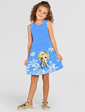 Flickor 3D Tecknat Snöflinga Klänning Ärmlös Sommar Vår Semester Dagligen Helgdag Prinsessa Skön Ljuv Barn 4-12 år Vardagsklänning A linjeklänning Knälång Normal