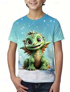 Pojkar 3D Djur Dinosaurie T-shirt Kortärmad Sommar Vår Mode Grundläggande Barn 4-12 år Rund hals Utomhus Ledigt Dagligen Normal