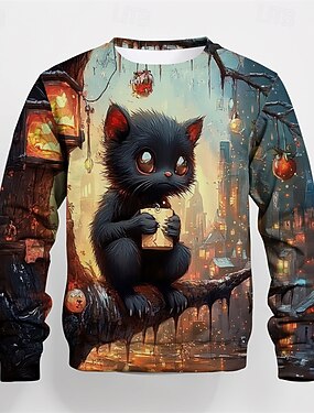 Flickor 3D Katt Tröja Pullover Långärmad 3D-tryck Vår Höst Mode Streetwear Förtjusande Barn 3-12 år Rund hals Utomhus Ledigt Dagligen Normal