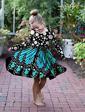 Flickor 3D Djur Fjäril Klänning Långärmad 3D-tryck Höst Vinter Semester Dagligen Helgdag söt stil Ledigt Ljuv Barn 3-10 år Swingklänning A linjeklänning Ovanför knäet Normal