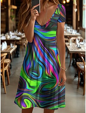 Dam Mini klänning Solklänning Stickad klänning Vardagsklänning T shirtklänning Elegant Semester Ledigt Strand Fest Normal Grafisk Abstrakt Kortärmad V-hals Blå Svartvit Gul Rubinrött Sommar Vår