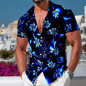 Herr Blomtryck Neonljus Blommor Hawaii skjorta Tropiska skjortor Aloha skjorta Kortärmad Hawaiisk Strandsemester Sommar Vår Nedvikt 3D-utskrift Skjortor med knappar Blå Gul Purpur Grön