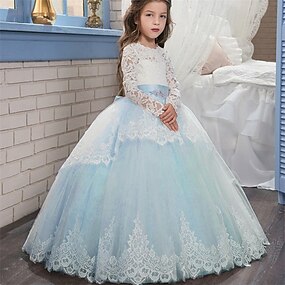 brudeflicksklänning första nattvardsklänningar flickors formella klänning bröllopsklänning fest bröllop formell mode vacker söt spets nät enfärgad ärmlös rund hals blå grå 4 år+