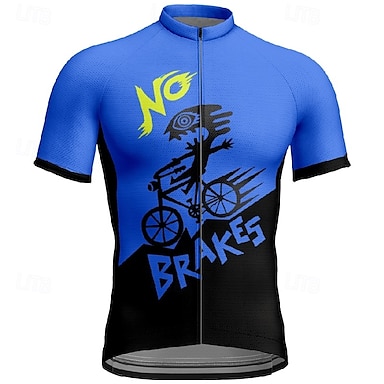 Herr Cykeltröja Bokstav & Nummer Kortärmad Cykel T-shirt Tröja med 3 bakfickor Bergscykling Snabb tork Anatomisk design Uppsugande Andningsfunktion sporter Blå Kläder