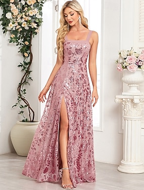 A-Line golvlängd formella klänningar kvällsklänning Quinceanera klänningar eleganta fest utan ärm off shoulder kvällsparty bröllop med glitter paljetter slits