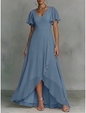 Dam Maxiklänning Chiffongklänningar Vardagsklänning Swingklänning Elegant Mode Modern Utomhus Semester Utekväll Normal Slät Kortärmad V-hals Blå Ljusgrön Rodnande Rosa Vinröd Sommar Vår