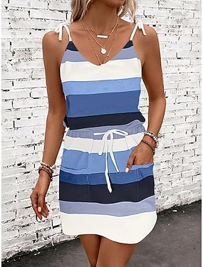 Dam Mini klänning Sheath Dress Sommarklänning Slipklänning Ledigt Dagligen Normal Randig Ärmlös V-hals Blå Rubinrött Kungsblå Purpur Sommar