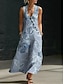 Dam Maxiklänning Boho-klänning Skjortklänning Solklänning Elegant bohemliv Etnisk Strand Helgdag Lös passning Blommig Grafisk Ärmlös V-hals Blå Grön Sommar Vår
