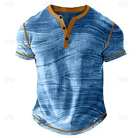 Herr Grafisk Lutning Henleytröja Kortärmad 3D-tryck Mode Designer Bekväm Dagligen Utomhus Sommar Blå Brun Grön Grå Henley Henley T-shirt