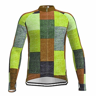 Herr Cykeltröja Grafisk Färgblock Rutig Långärmad Cykel Tröja Överdelar med 3 bakfickor Bergscykling Vägcykling Snabb tork Reflexremsa Bakficka Fuktabsorberande sporter Gul Blå Purpur Kläder