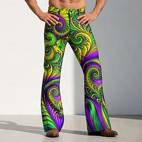 Mardi gras Herr Fjädrar Karnival Fleur-De-Lis Långbyxor Disco byxor 60-70-tals byxor Medium Midja Vintage retro Fest Helgdag Sidfickor Utsvängda byxor med ben Sommar Vår 3D-tryck Lila + Grön Ljuslila