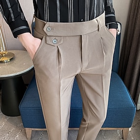 Herr Studenten Kostymbyxor Långbyxor Kinesiska Knappar Ficka Ensfärgat Komfort Formell Fest Arbete Mode Klassisk Stil Korall Rosa Gul Microelastisk