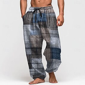 Herr Geometriska mönster Etnisk Långbyxor Säckiga byxor Casual byxor Medium Midja Boho Vintage retro Hem Utomhus Semester Elastisk dragsko i midjan Linneliknande byxor med fickor Sommar Vår 3D-tryck