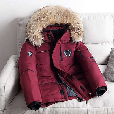 Herr Vinterkappa Dun Pufferjacka Anorak med fuskpäls 90% vit ankdun Sport & Utomhus Håller värmen Vinter Ensfärgat Svart Vin Pufferjacka