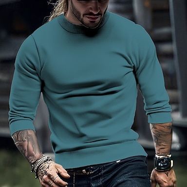 Herr Pullover tröja Stickad tröja Ribbad Sticka Vanliga toppar Stickat Slät Hög hals Mode Grundläggande Semester Dagliga kläder Kläder Höst Vinter Svart Vit S M L