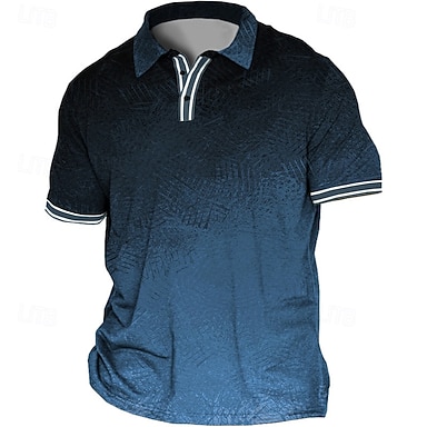 Herr Grafisk Pikétröjor Kortärmad Polotröjor Kavajslag Vintage Ledigt Streetwear Dagliga kläder 3D-utskrift Nättyg som andas Vår & sommar Blå Purpur Brun