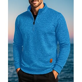 Herr Avslappnad tröja Långärmad Henley krage Överdelar Utomhus Varm Vinter Polyester Svart Vit Armégrön Tennis Golf Löpning