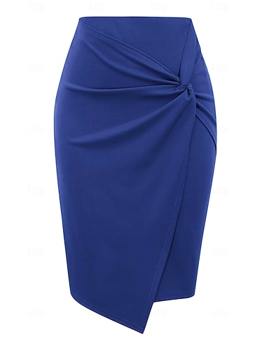 Dam Elegant Mode Ledigt Ovanför knäet Hög midja Kjolar Slät Rynkad Oelastisk Dagligen Gata Blå Vin Svart Grön Sommar Polyester