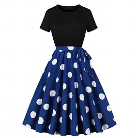 Prickigt Retro Vintage 1950-tal Grease Outfit Swing Klänning Flare Klänning Prickigt Festklänning Kvinnors Karneval Maskeraddräkt Casual Daglig Vuxen Klänning Homecoming Klänningar